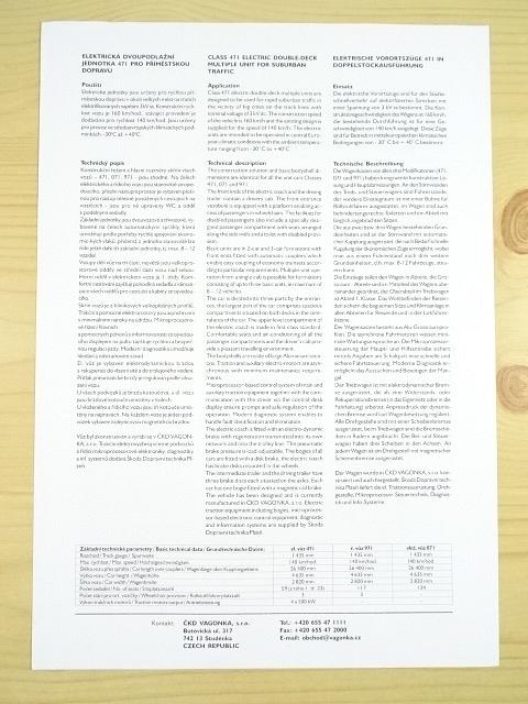 ČKD Vagonka - elektrická dvoupodlažní jednotka řady 471 - prospekt