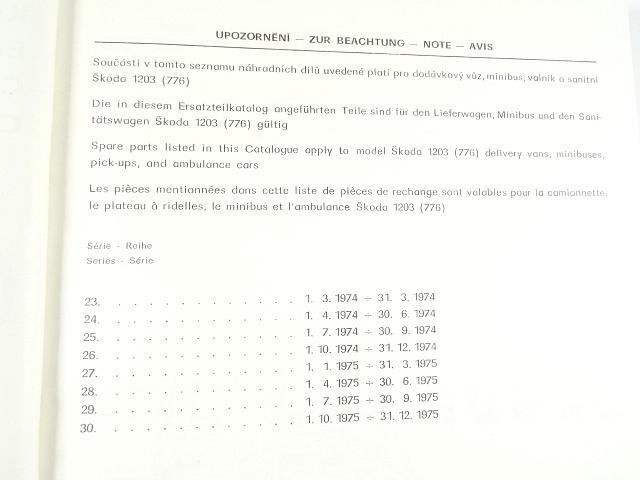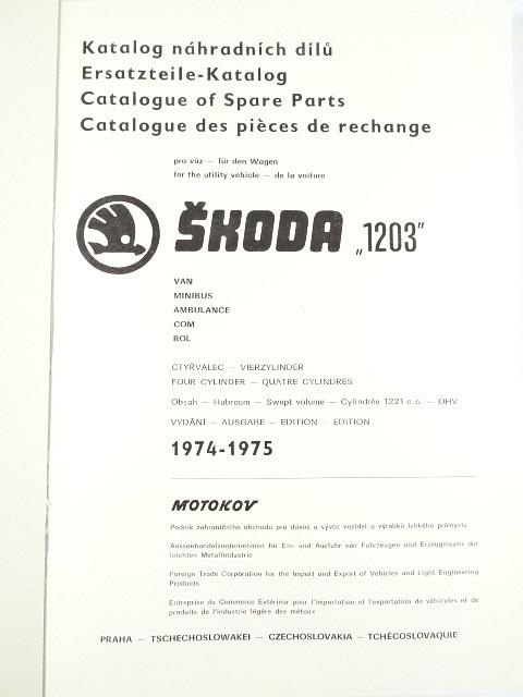 Škoda 1203 - VAN, minibus, ambulance, COM, ROL - katalog náhradních dílů - 1974 - 1975 - Motokov