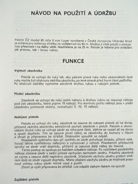ČZ - pistole ČZ model 85 ráže 9 mm Luger - návod na použití a údržbu - Merkuria